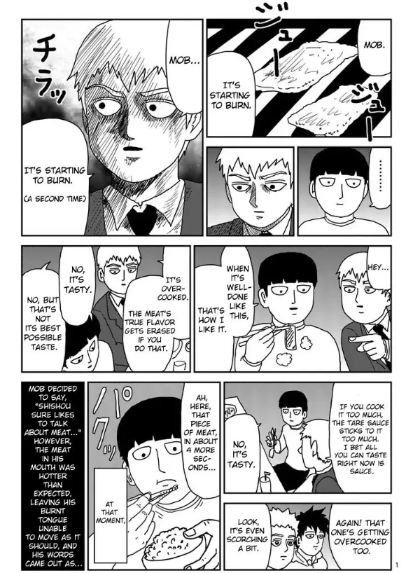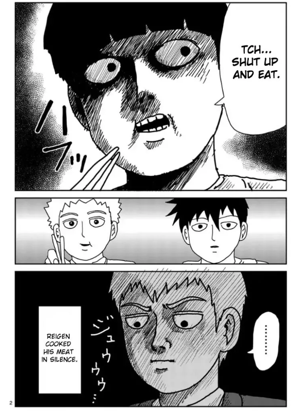 (MOB PSYCHO 100) Mob Psycho 100 is a manga about a timid psychic boy named Mob and his con-artist mentor, Reigen. Reigen works as an excorcist but, importantly, has no actual psychic abilities whatsoever. a lot of comedy is mined out of the methods he uses to trick clients out of their money. this particular client wants an evil ghost excorcised from a photograph. here's Reigen's solution: ![]() ![]() a simple, cute joke well-executed with funny, overly-dramatic drawings. i love it!!! the wobbly cursor in particular really gets me. since it's been animated, here it is in video form to compare: as a bonus, here's another very funny two pages from Mob Psycho 100 that i enjoy: ![]() ![]() funny drawings are so powerful....... |